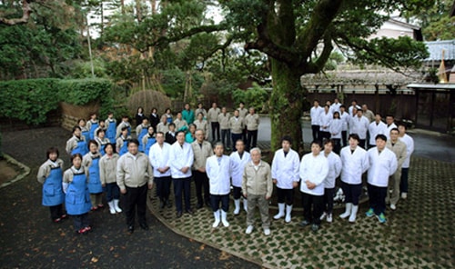 ●人 石本酒造では、昼時、厨房で用意された食事を皆が口にする。それは、蔵の味と酒造りへの想いを共有するため。蔵元、蔵人はもちろん、瓶詰め・出荷の担当者、事務や営業、専属の庭師、厨房の賄いさん、その誰一人が欠けても、越乃寒梅は生まれない。蔵の味を知る一人一人が心を一つにし、酒造りを追及する。その「和」の下に生まれた酒が、越乃寒梅に他ならない。